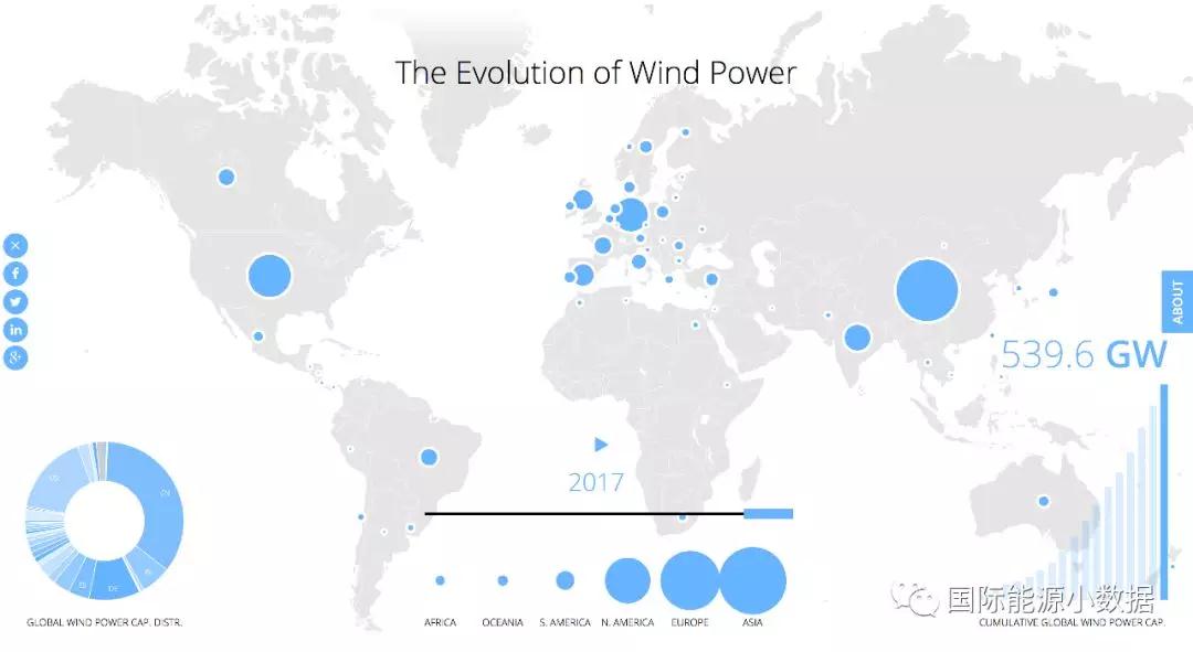 根據(jù)Greenbyte網(wǎng)站的數(shù)據(jù),2017年底全球風電累計裝機達到539.6吉瓦,其中裝機前10名的國家