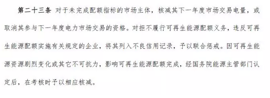 (2)對于未完成指標的市場主體,將被核減其下一年的市場交易電量,或取消電力交易資格;拒不履行配額的企業(yè)將被列入不良信用記錄,予以聯(lián)合懲戒。