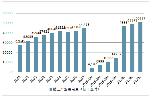 2009-2018 全國第二產(chǎn)業(yè)用電數(shù)據(jù)及預(yù)測(億千瓦時)