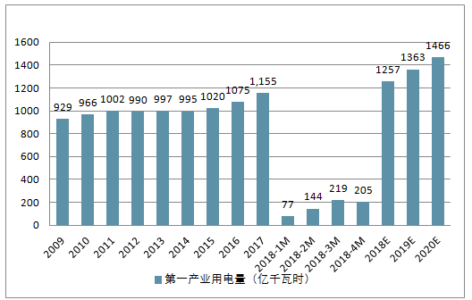 2009-2018 全國第一產(chǎn)業(yè)用電數(shù)據(jù)及預(yù)測(億千瓦時)