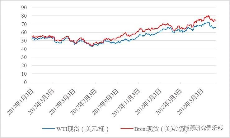 上半年國際原油價格先漲后跌。受主要產(chǎn)油國持續(xù)減產(chǎn)、中東地區(qū)地緣政治沖突升級、美國原油庫存持續(xù)下降等影響,布倫特油價在1月回升突破70美元/桶,至6月累計(jì)上漲16%。伴隨美國原油日產(chǎn)量不斷刷新紀(jì)錄高點(diǎn),國際油價呈現(xiàn)高位震蕩。