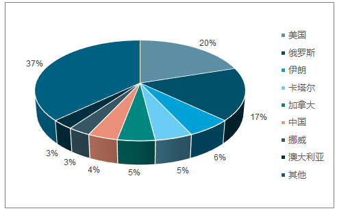 2017 年主要天然氣生產(chǎn)國占比