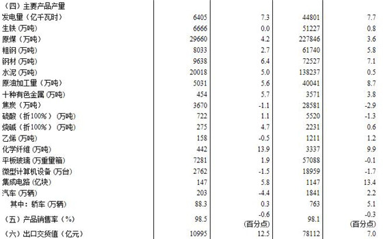 (1)規(guī)模以上工業(yè)增加值及其分類項(xiàng)目增長速度按可比價(jià)計(jì)算,為實(shí)際增長速度;其他指標(biāo)除特殊說明外,均按現(xiàn)價(jià)計(jì)算,為名義增長速度。