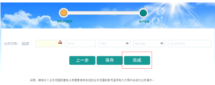 注冊(cè)及賬號(hào)相關(guān)信息填寫完畢保存后,用戶點(diǎn)擊“完成”。如下圖所示: