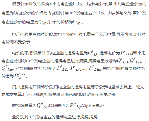 1)引入信息公示步驟,用電企業(yè)公示需求電量和期望電價(jià),發(fā)電企業(yè)公示滿(mǎn)足發(fā)電能力約束的可供電量和期望電價(jià),準(zhǔn)確展示市場(chǎng)的供需形勢(shì)和價(jià)格訴求。