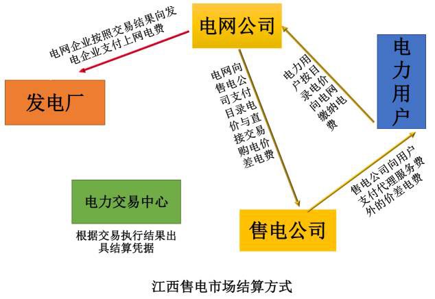 在結(jié)算方面和廣東等有較大差異。廣東和全國大部分地區(qū)都是國網(wǎng)和售電公司、電力用戶打交道。售電公司與電力用戶不直接產(chǎn)生資金關(guān)系,但是江西省可以由售電公司向大用戶支付扣除服務(wù)費之外的價差電費。