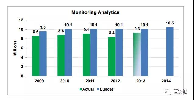 當然,也有人反對引入市場監(jiān)測。比如Cinergy認為,如果傳輸市場(指輸配環(huán)節(jié))實現(xiàn)了NOPR的設想,以FERC和法院作為后盾,商品市場(指電力交易環(huán)節(jié))就能夠自我調節(jié),因此不需要市場監(jiān)測。一些評論者,如Metropolitan 及Southern Company公司,認為在已經(jīng)有州及聯(lián)邦監(jiān)管部門的情況下,再引入RTO監(jiān)測,這屬于疊床架屋,復制已經(jīng)存在的成本高昂的監(jiān)管責任。事實上,市場監(jiān)測的確不便宜,以下是PJM的第三方監(jiān)測公司的歷年預算。為什么這么貴?值不值?之后會加以介紹。