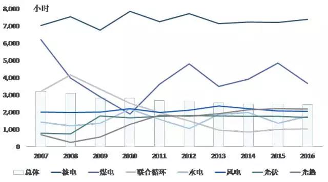 西班牙2007-2016年機(jī)組平均利用小時