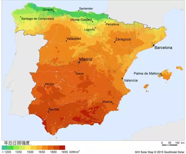 西班牙太陽能資源分布圖