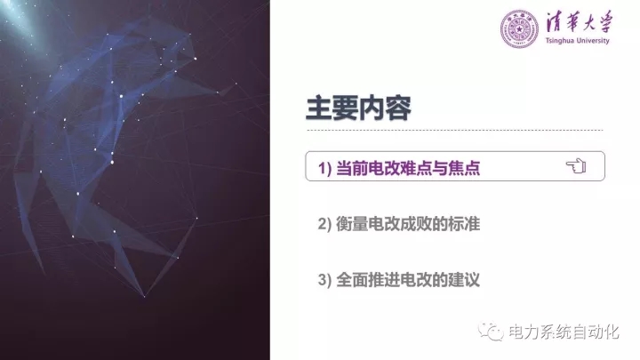 清華大學(xué)夏清教授當(dāng)前電力體制改革的難點(diǎn)、痛點(diǎn)與對(duì)策的主旨報(bào)告中指出當(dāng)前電改的10大難點(diǎn)與焦點(diǎn)問題,深入分析了衡量電力體制改革成敗的標(biāo)準(zhǔn),提出了全面推進(jìn)電改的10大建議。小編征得專家同意,在此分享報(bào)告PP