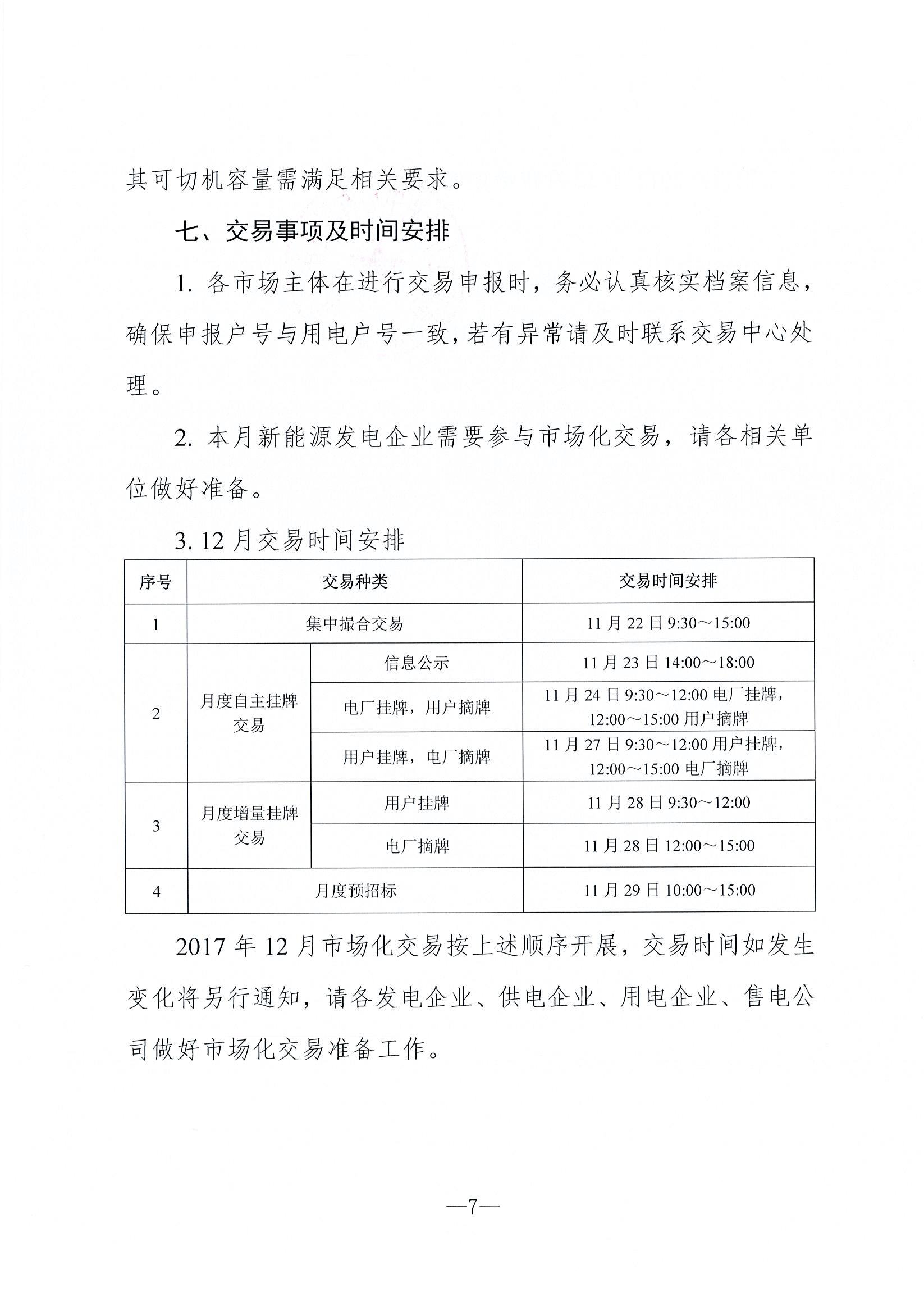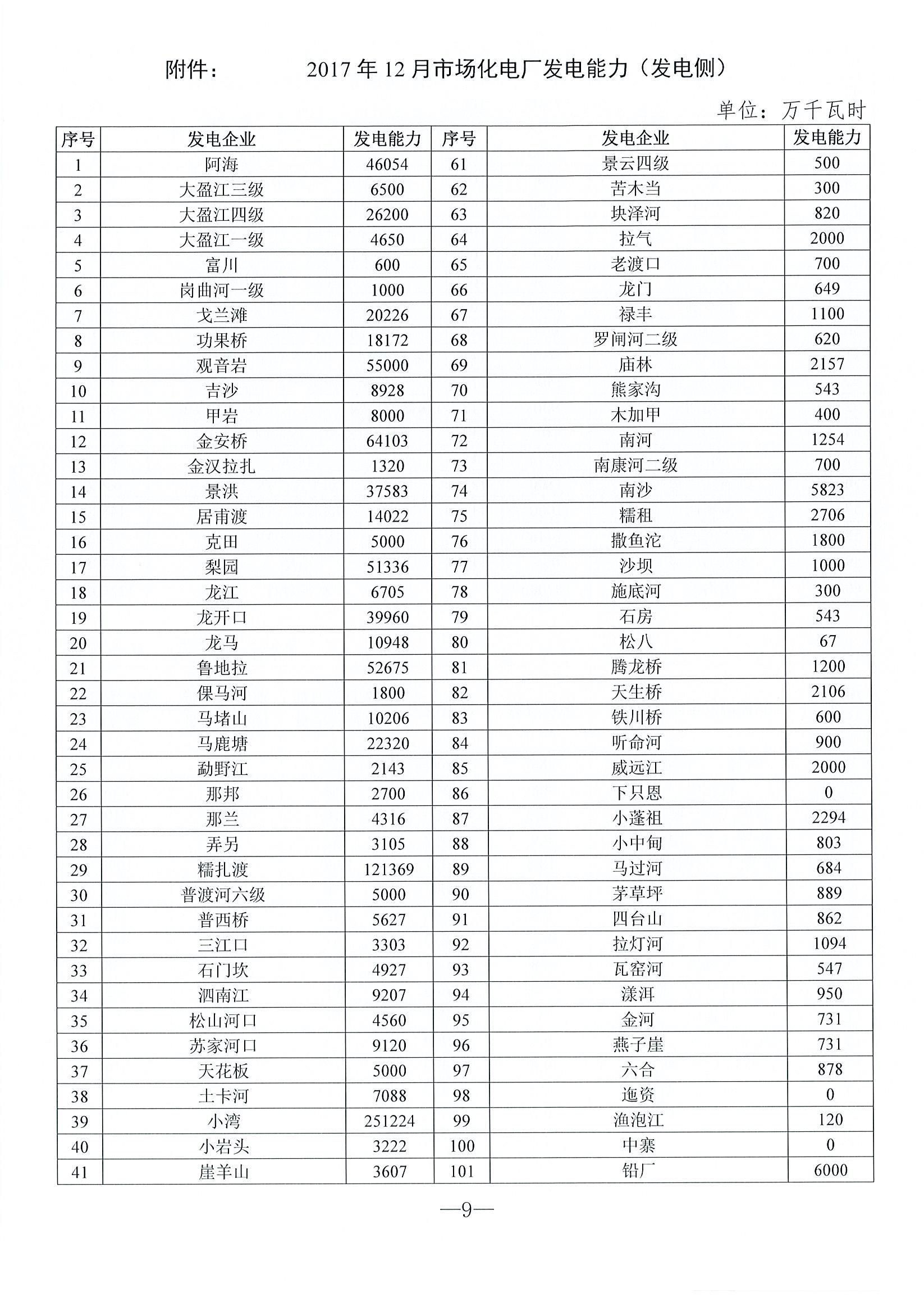 云南2017年12月電力市場化交易信息披露
