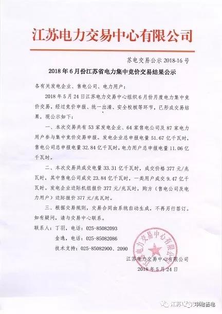 本次交易共成交電量33.31億千瓦時,成交價格377元/兆瓦時,其中售電公司成交23.84億千瓦時,一類用戶成交9.47億千瓦時。