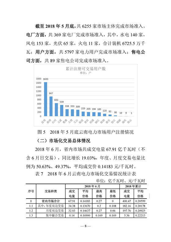 云南2018年6月電力交易月報:6月41家售電公司代理用戶參與交易
