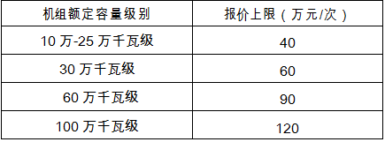 第三十一條 賣方火電企業(yè)按照機(jī)組額定容量級(jí)別報(bào)價(jià),各級(jí)別機(jī)組的報(bào)價(jià)上限見下表:
