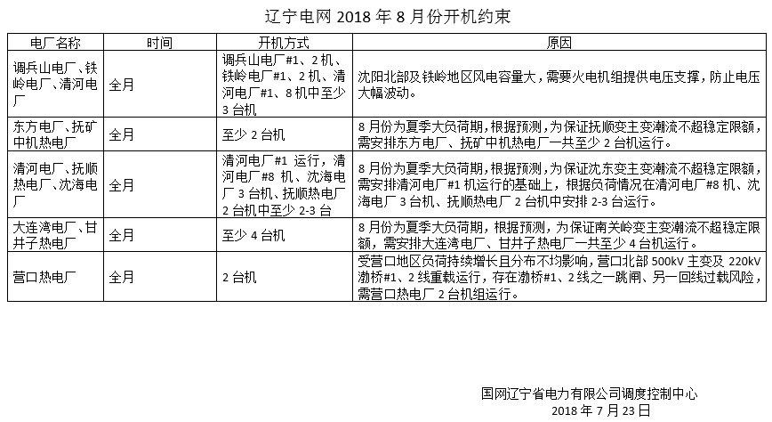 調(diào)度提供的2018年8月機組運行約束及斷面受限信息詳見附件。