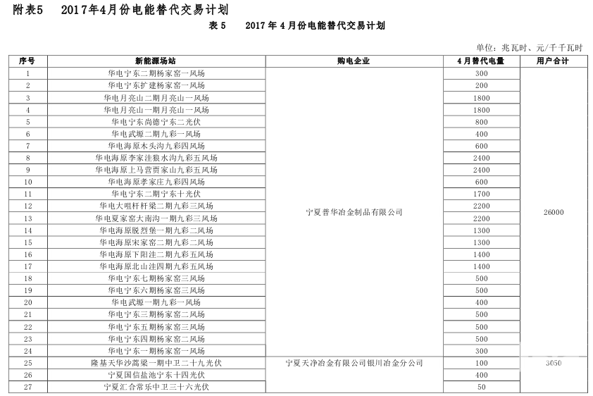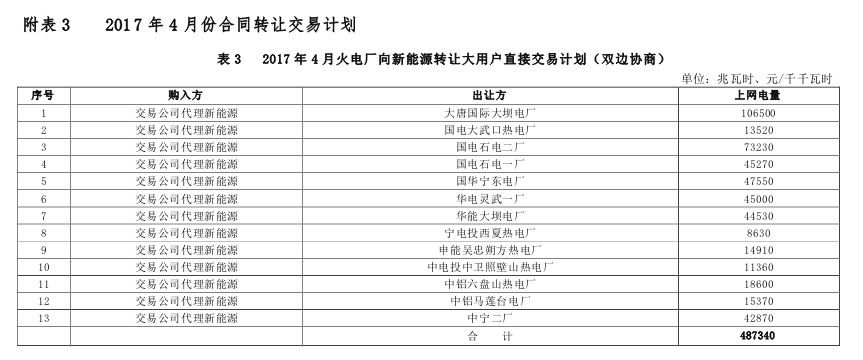 寧夏電力交易中心:下發(fā)《4月份電能交易計劃通知》 內(nèi)附詳單