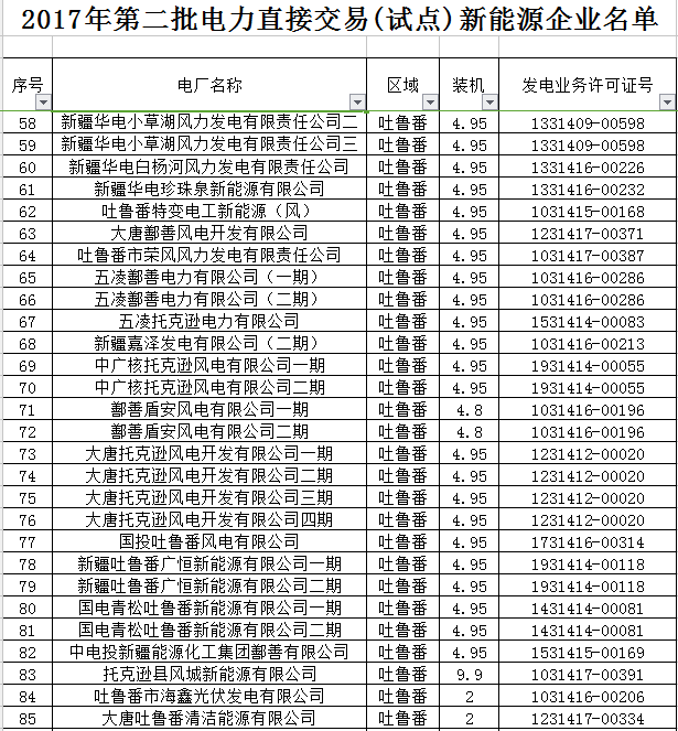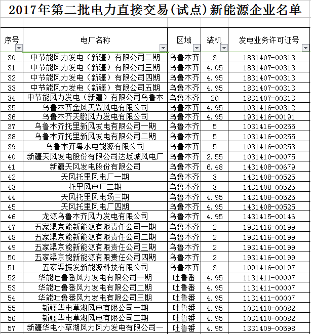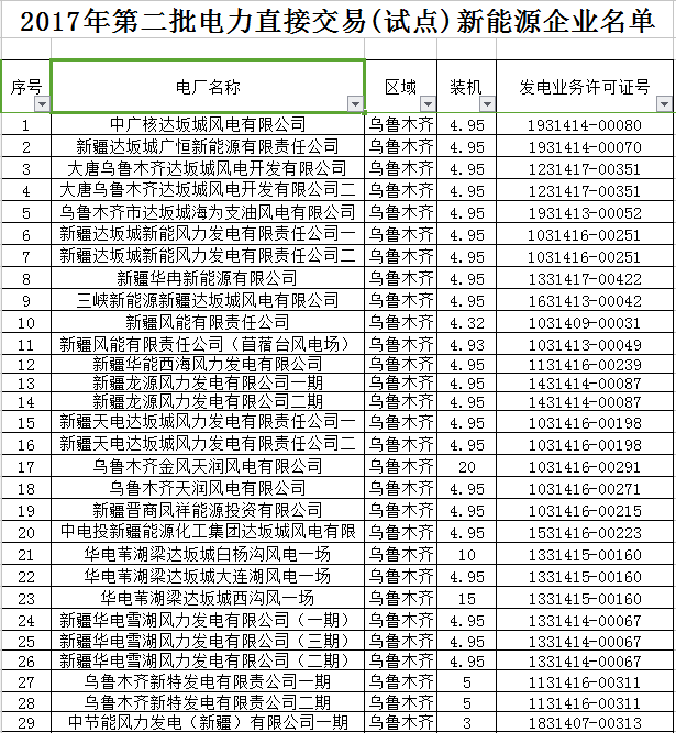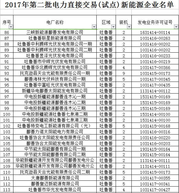 2. 2017年第二批電力直接交易(試點(diǎn))新能源企業(yè)公示名單