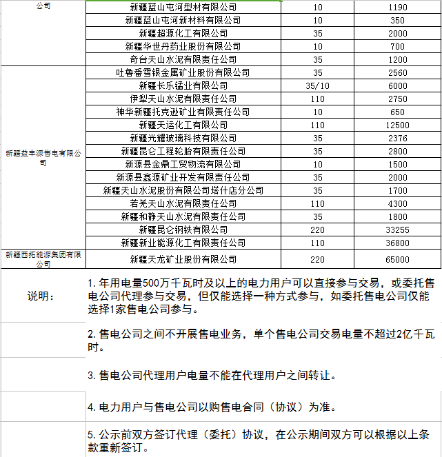 新疆第二批發(fā)電企業(yè)與電力用戶直接交易(試點(diǎn))電力用戶、售電公司及發(fā)電企業(yè)公示名單