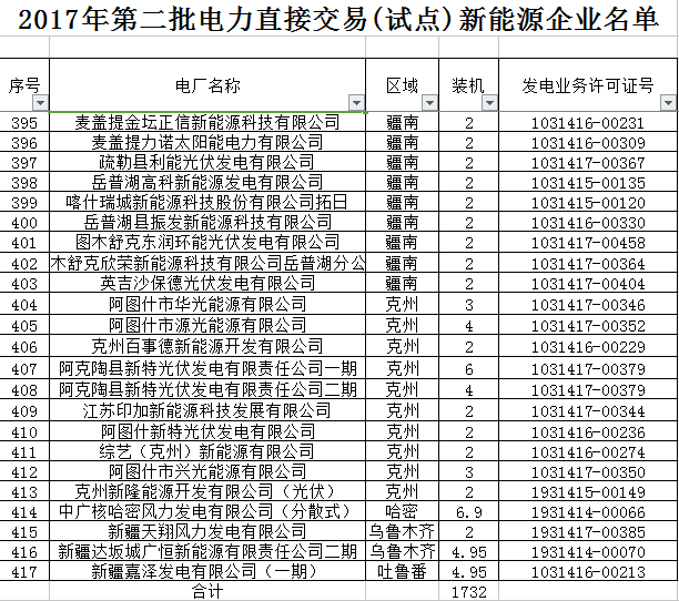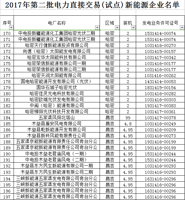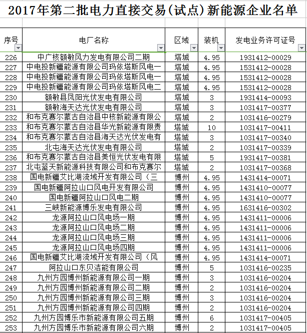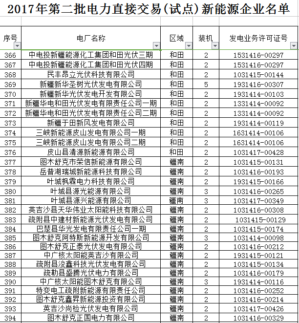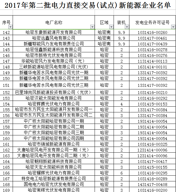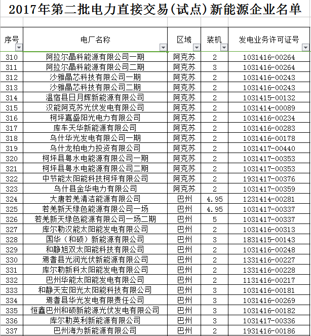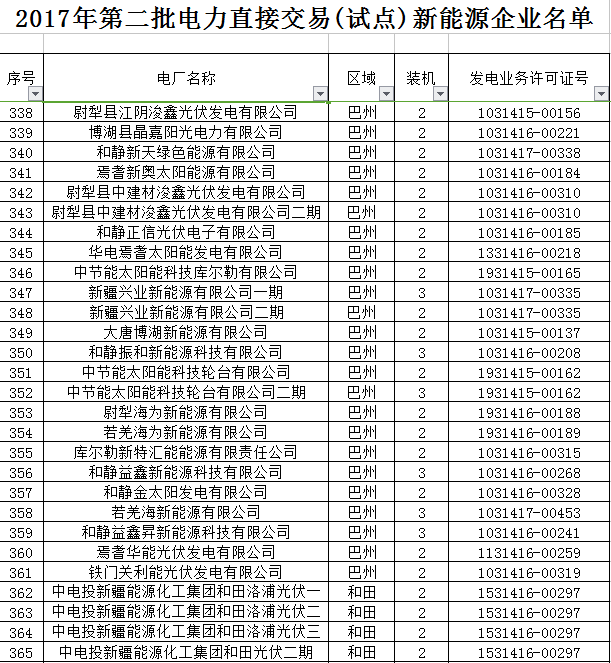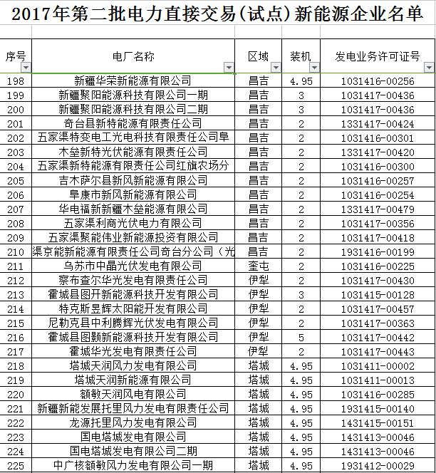 新疆第二批發(fā)電企業(yè)與電力用戶直接交易(試點)電力用戶、售電公司及發(fā)電企業(yè)公示名單