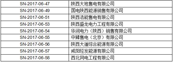 2、2017年下半年電力直接交易售電公司參與名單