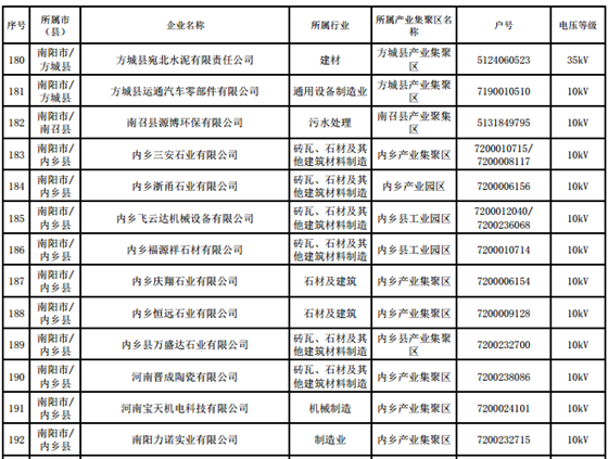 河南第四批新增608家電力用戶公示名單