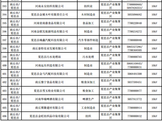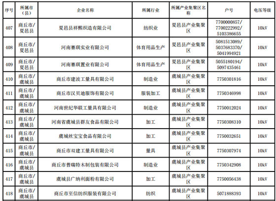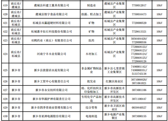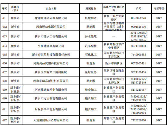 河南第四批新增608家電力用戶公示名單