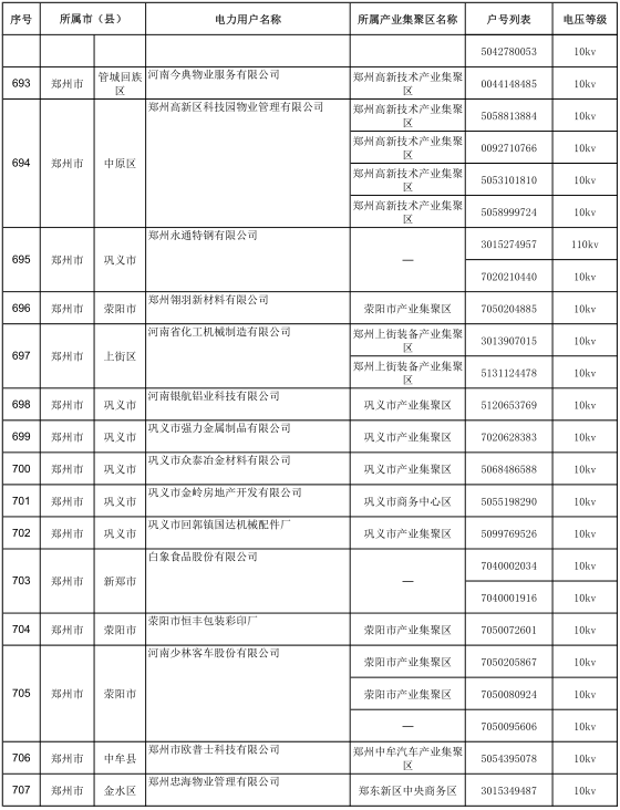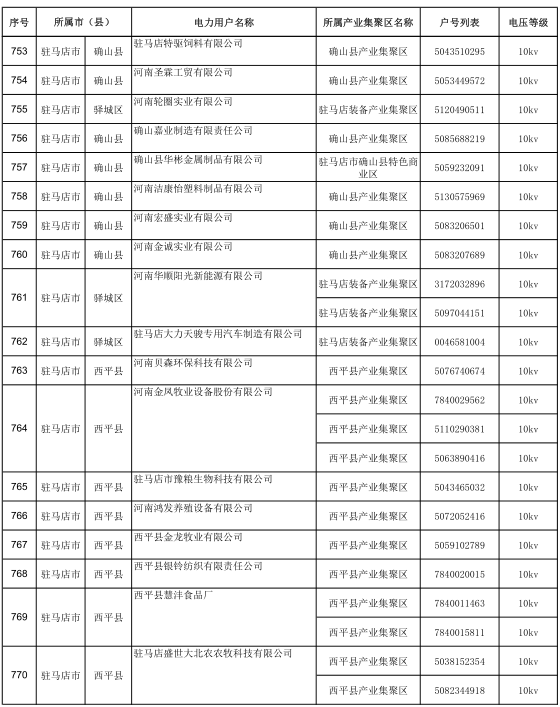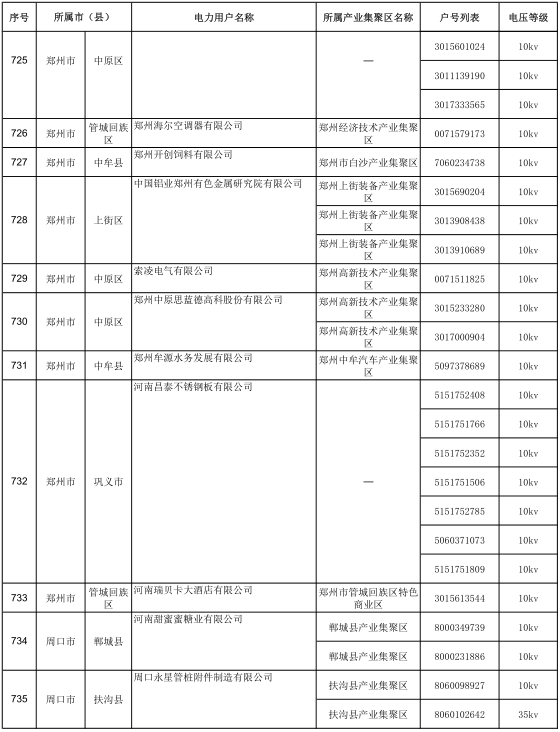 2017年河南省770家新增電力用戶公示名單(第七批)