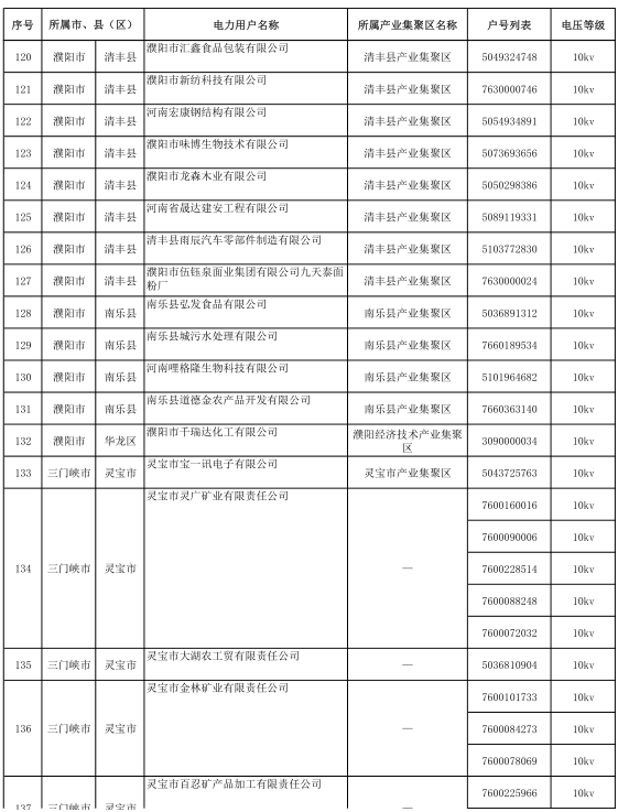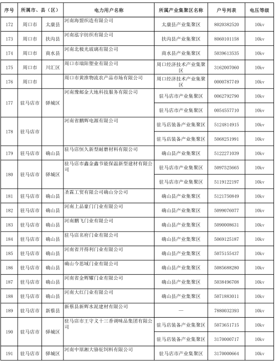 河南2017年第六批191家準(zhǔn)入(具備交易資格)電力用戶名單
