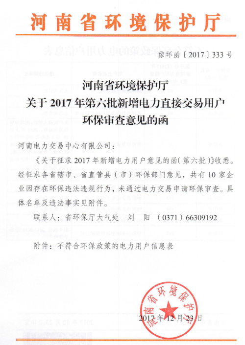 河南電力交易中心日前發(fā)布了《2017年第六批準(zhǔn)入(具備交易資格)電力用戶名單公告》,公告中稱,經(jīng)審核,除焦作市慧誠精細(xì)化工有限公司等10家電力用戶存在環(huán)保問題,河南省華鵬棉業(yè)有限公司等11家電力用戶準(zhǔn)入申