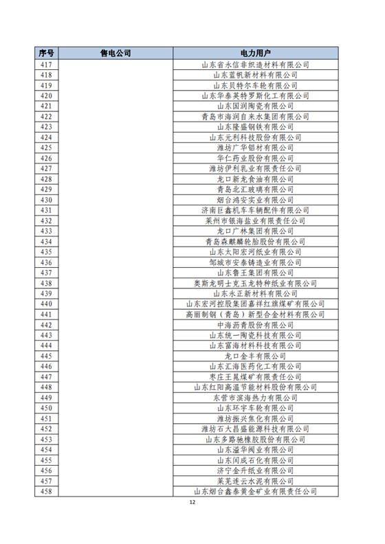 山東2018年省內(nèi)電力交易用戶與售電公司代理關(guān)系及自主參與直接交易用戶名單
