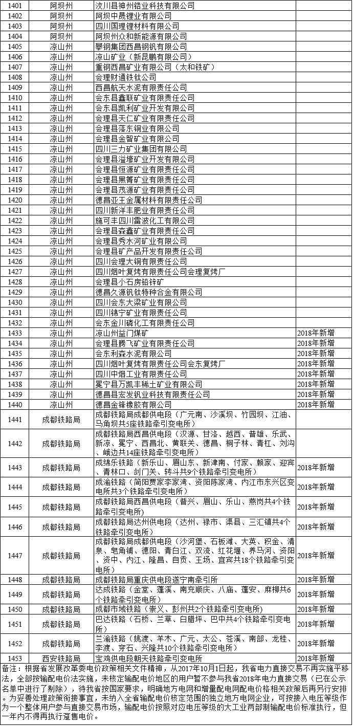 四川2018年1453家電力直接交易用戶再公示名單