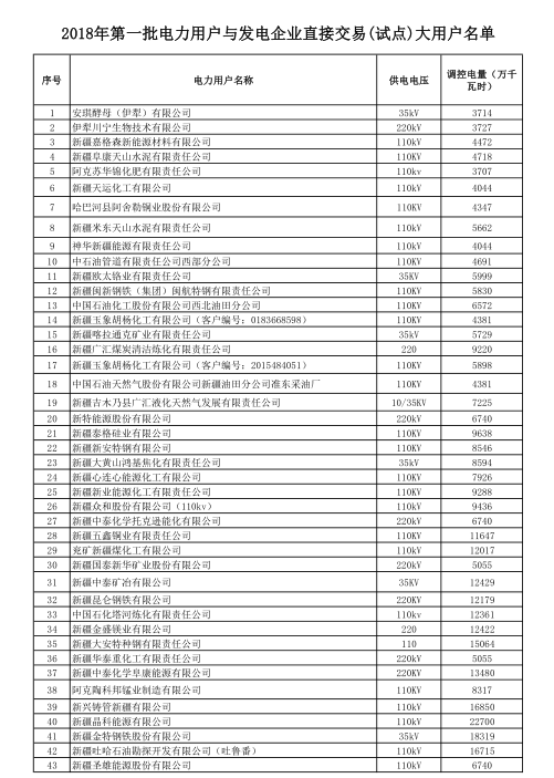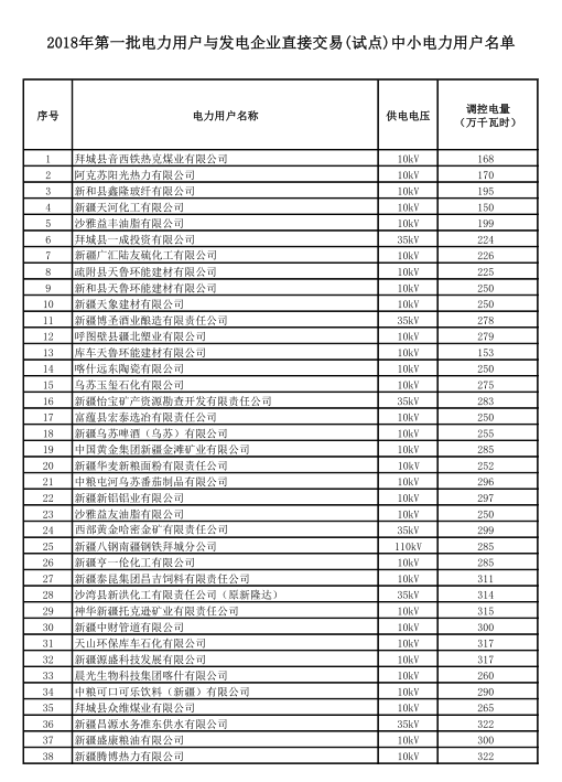 新疆2018年第一批電力用戶與發(fā)電企業(yè)直接交易方案發(fā)布:規(guī)模110億(附名單)