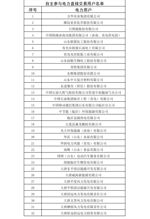 山東省2018年2月電力直接交易(雙邊協(xié)商)24日展開(附名單)