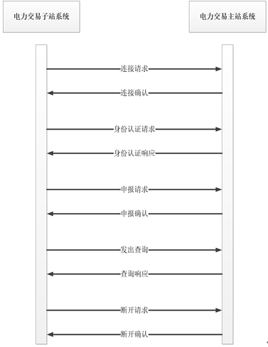 Ø 電力交易子站系統(tǒng)向電力交易主站系統(tǒng)發(fā)出連接請求,在得到連接確認后發(fā)出身份認證請求;