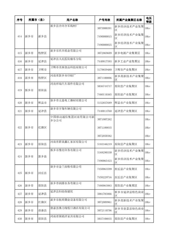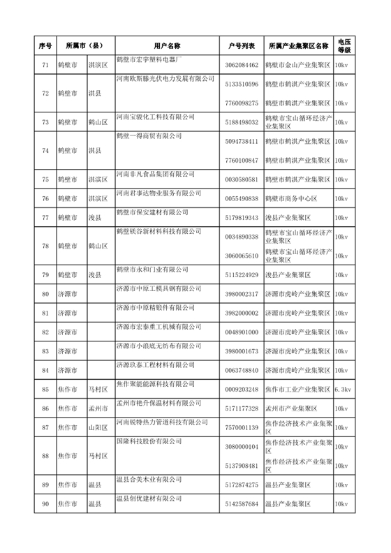 669家!河南公示2018年第十批新增電力用戶名單(附名單)