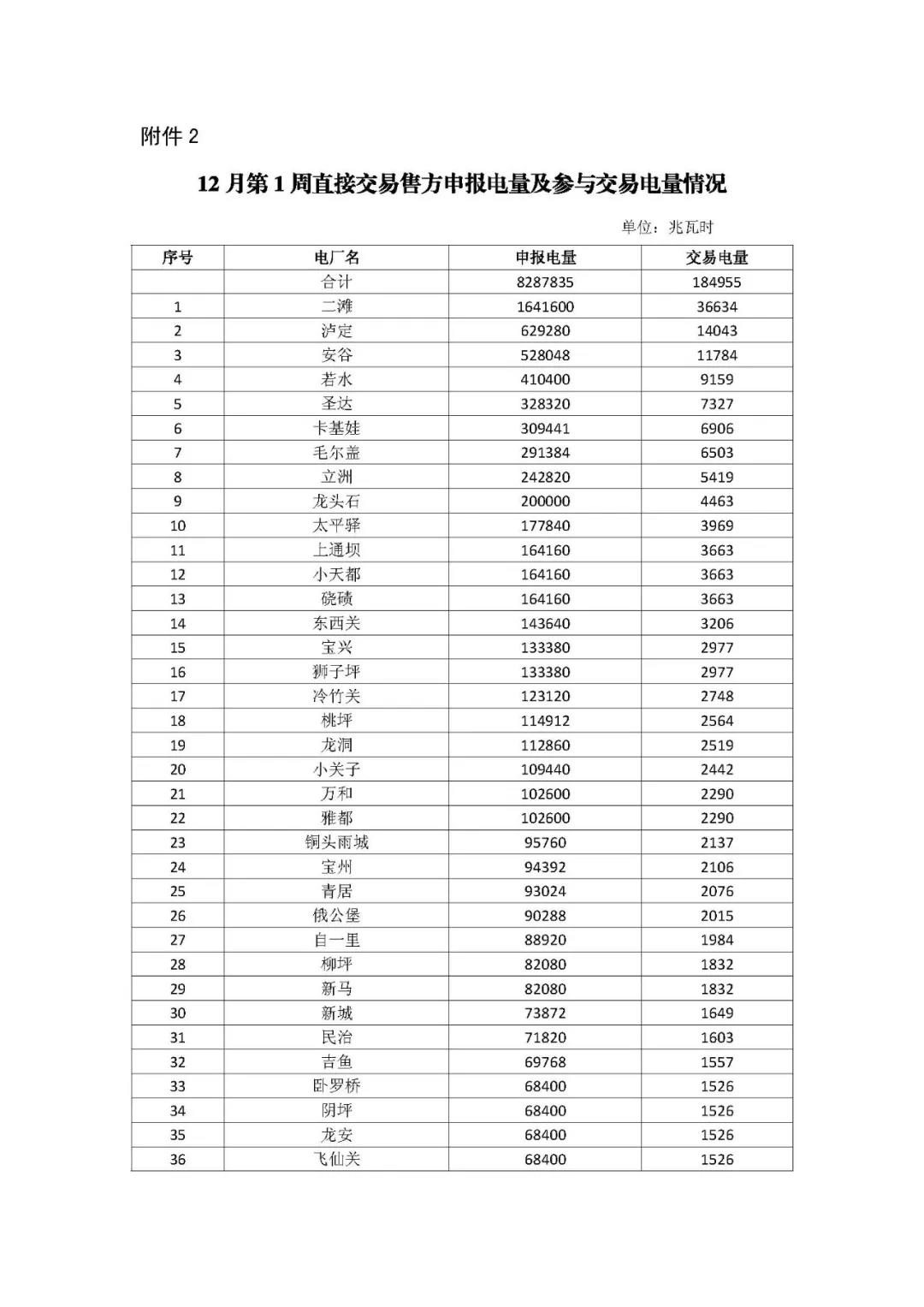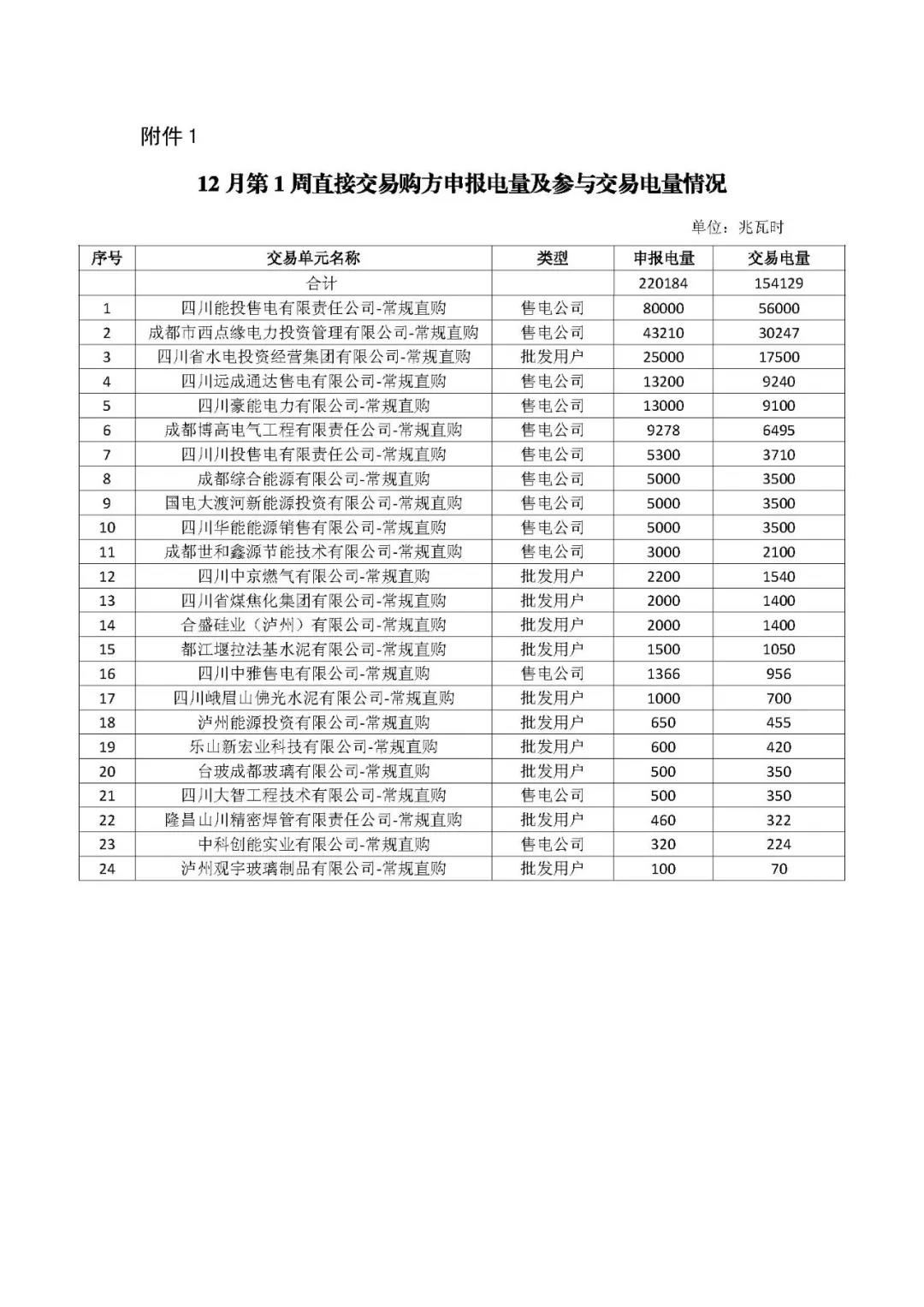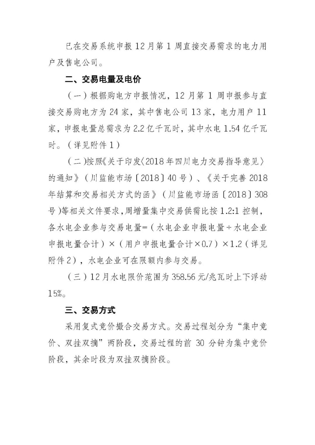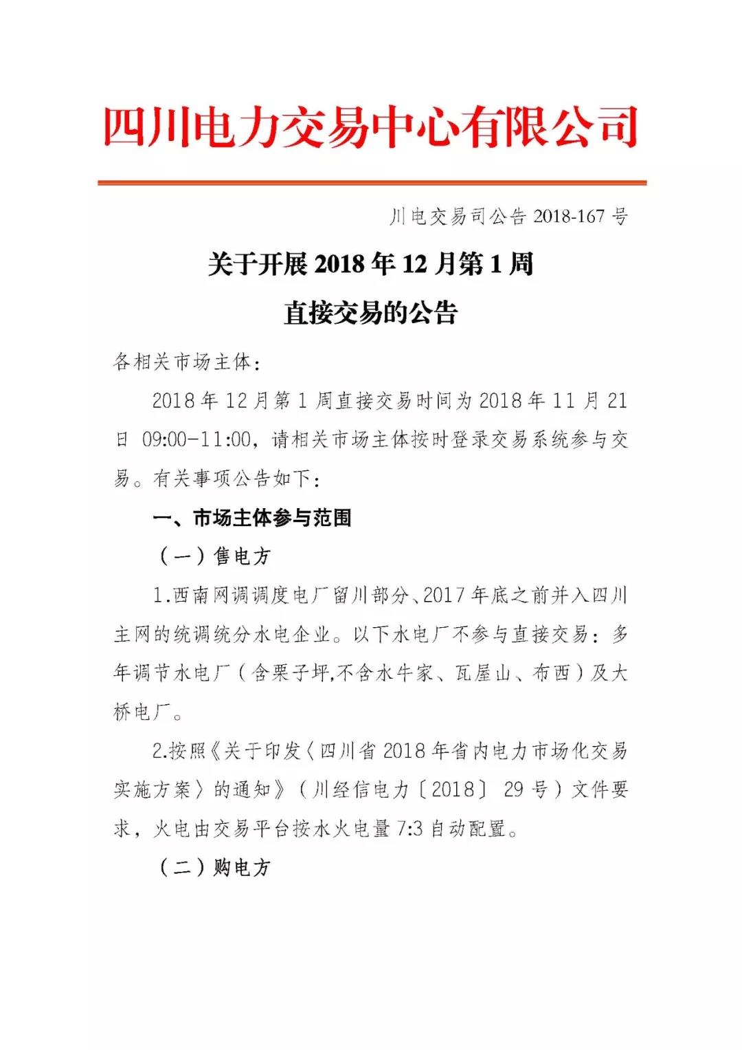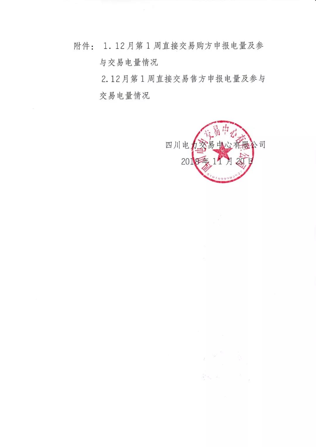 公告 | 四川關于開展2018年12月第1周直接交易的公告