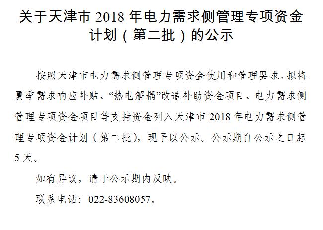 1917萬元!天津公示2018年電力需求側管理專項資金計劃(第二批)