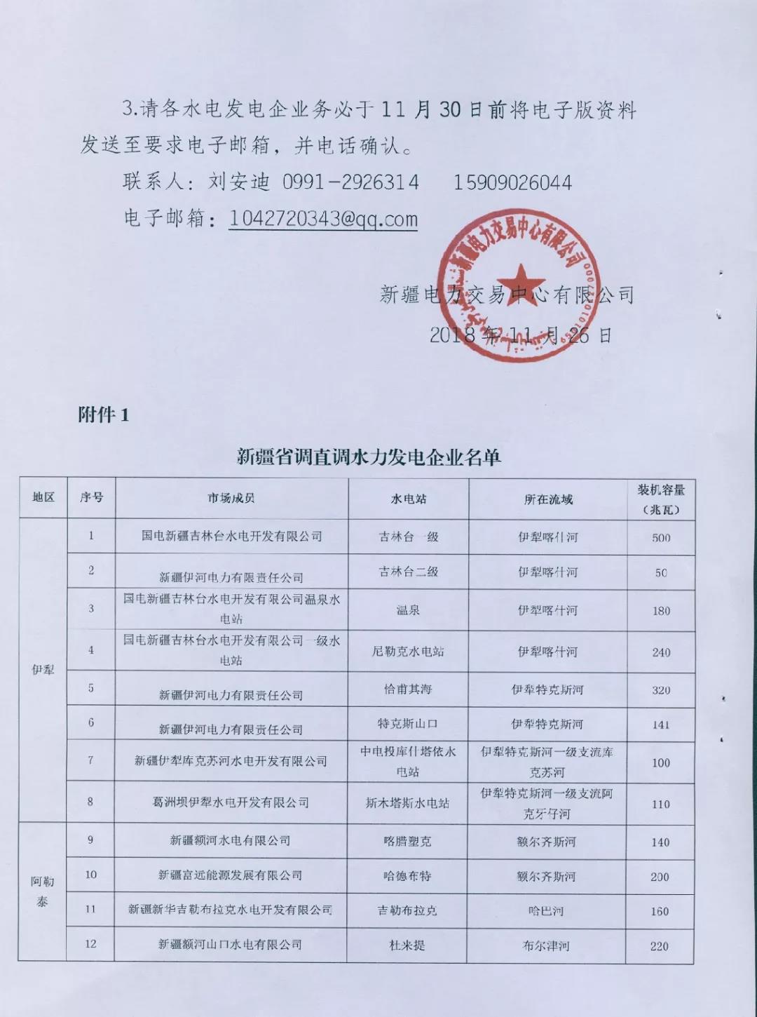 新疆電力交易中心有限公司關(guān)于變更省調(diào)直調(diào)水力發(fā)電企業(yè)電力市場合同管理的通知