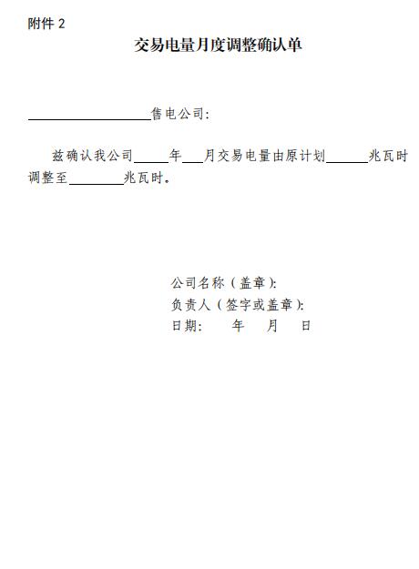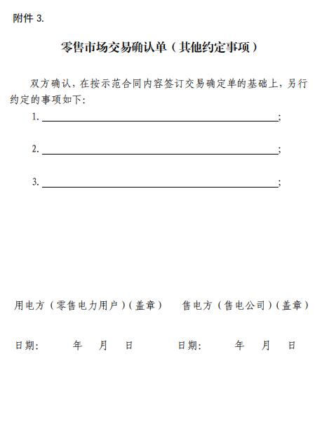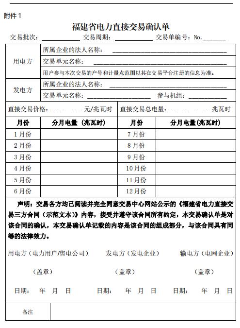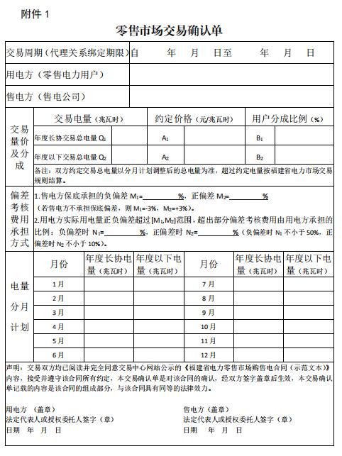 福建省電力零售市場供電合同交易確認(rèn)單(附件 1)。