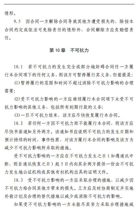 6.2.3 一方違約后,另外兩方應(yīng)當(dāng)采取適當(dāng)?shù)拇胧┓乐箵p失進一步擴大,如果因沒有采取適當(dāng)?shù)拇胧┲率箵p失擴大的,則不得就擴大的損失要求違約方承擔(dān)賠償責(zé)任。