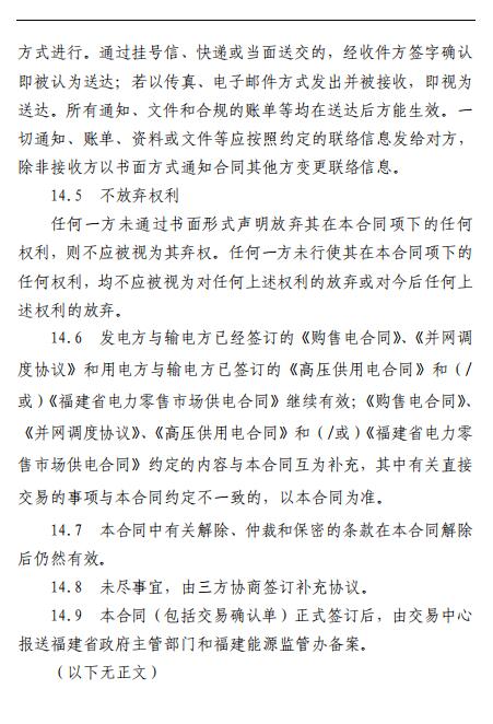福建電力市場交易相關(guān)合同示范文本正式印發(fā)!