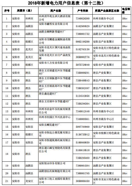 河南電力交易中心發(fā)布了《2018年河南省新增電力用戶名單公示(第十二批)》