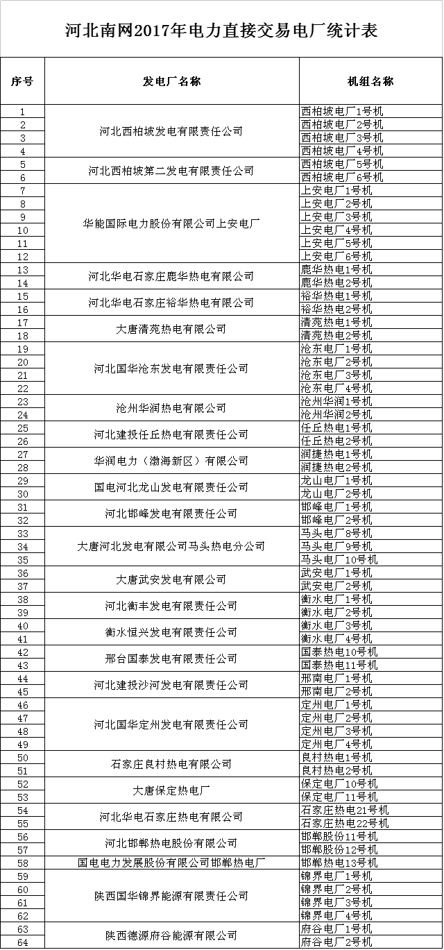 關(guān)于公示河北省南網(wǎng)2017年電力直接交易準(zhǔn)入第一批企業(yè)名單的通告