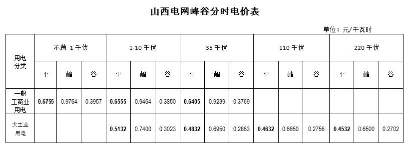 山西電網(wǎng)峰谷分時(shí)電價(jià)表