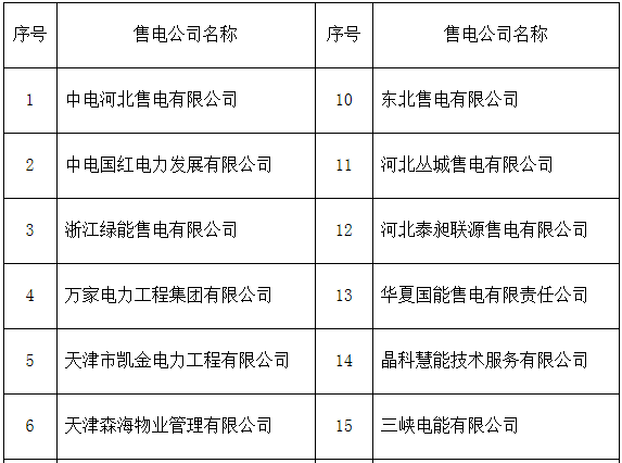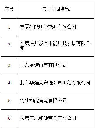 冀北新公示25家售電公司