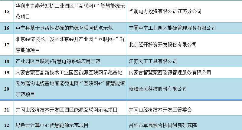 附件:首批“互聯(lián)網(wǎng)+”智慧能源(能源互聯(lián)網(wǎng))示范項目名單