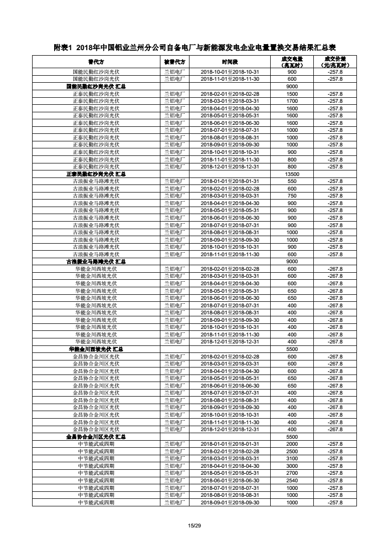 甘肅電力交易中心日前發(fā)布《2018年甘肅蘭鋁、金川集團(tuán)、玉門(mén)石油自備電廠與新能源發(fā)電企業(yè)電量置換交易結(jié)果公告(2018年1月23日)》,本次交