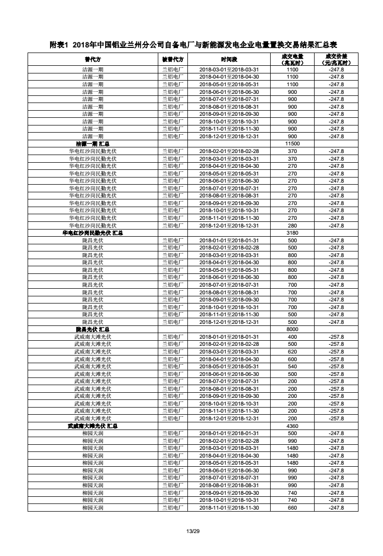 《2018年甘肅蘭鋁、金川集團(tuán)、玉門(mén)石油自備電廠與新能源發(fā)電企業(yè)電量置換交易結(jié)果公告(2018年1月23日)》:總成交量24.55億千瓦時(shí)