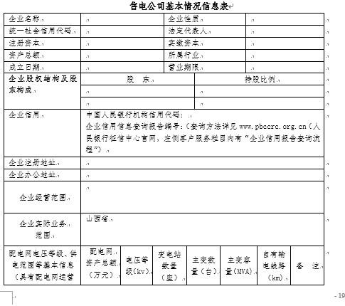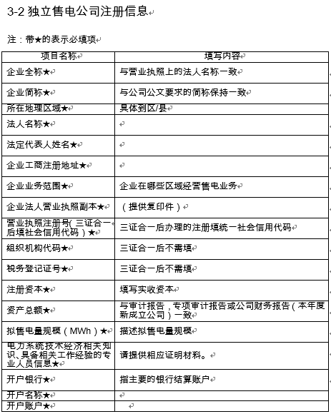 售電公司公示信息模板
