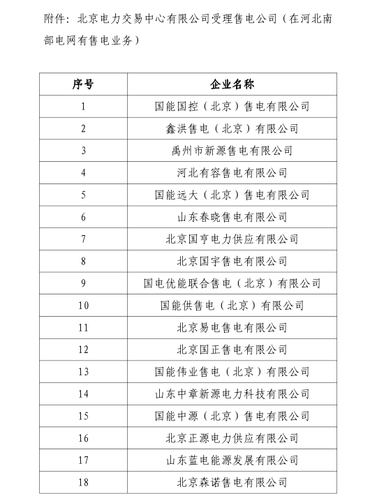 河北電力交易中心日前發(fā)布了關于售電公司公示結果的公告,公告中稱,對北京電力交易中心受理并在河北南部電網(wǎng)有售電業(yè)務的22家售電公司注冊...